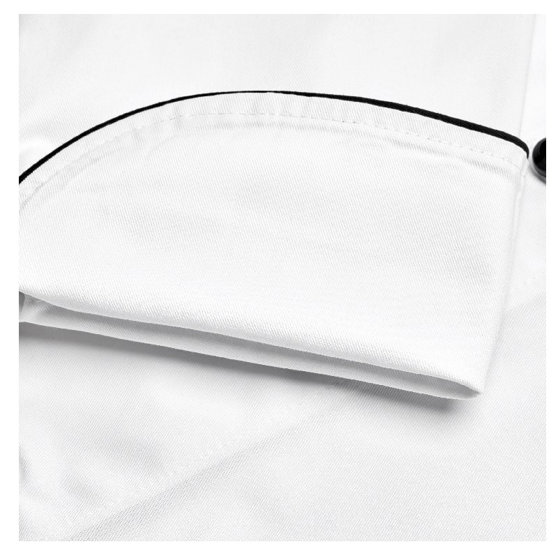contrast piping at collar, front panel and cuff