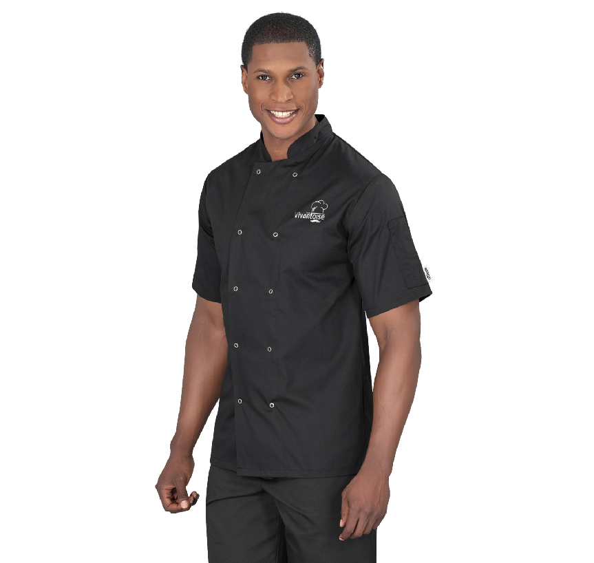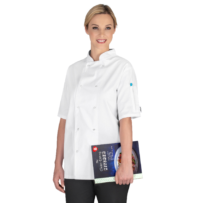 Double breasted with press studs. Thermometer sleeve pocket. Locally manufactured.