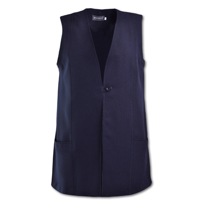ArrayThe Freya Gilet is long in length with side pockets and is ideally worn over a blouse or top. It is a practical corporate accessory and complements most service or hospitality uniforms.