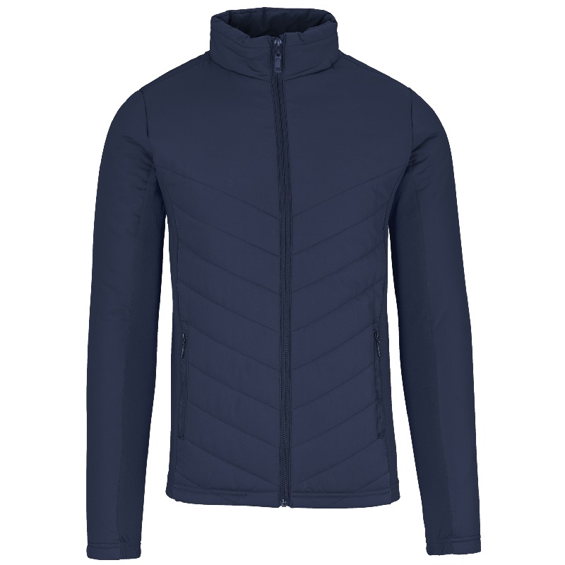 the lightly padded jacket features unique diagonal stitch detail on the front and back