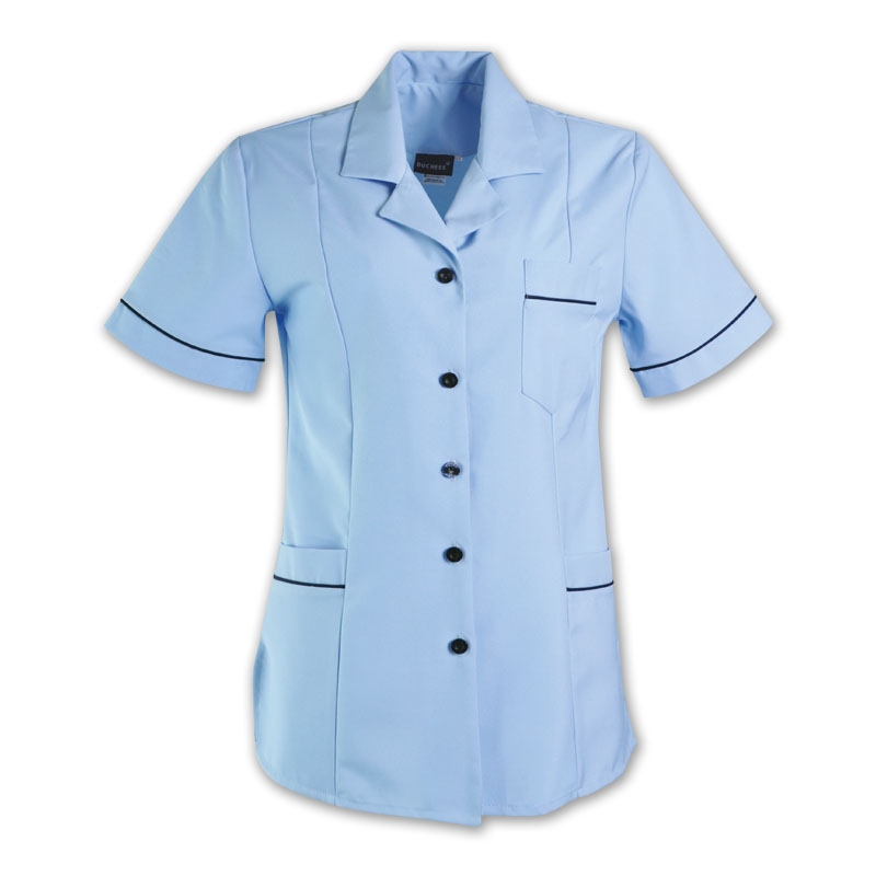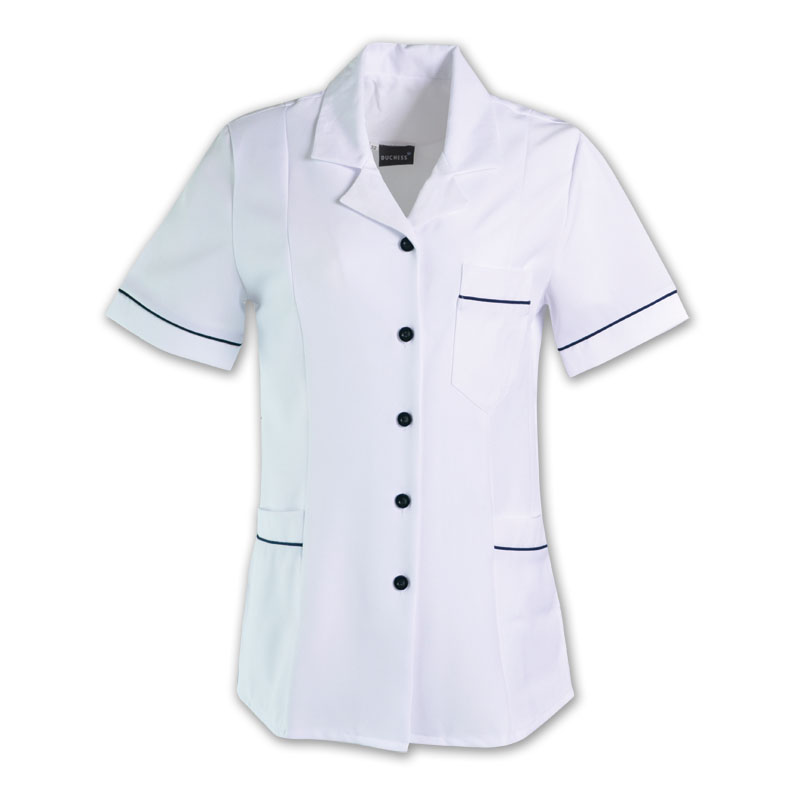 ArrayThe BARBARA top is panelled to create a flattering shape. This garment is ideal for use as a uniform with its fitted shoulder pads and versatile design.