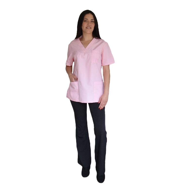 ArrayA Medical scrub top made from plain weave poly-cotton fabric.