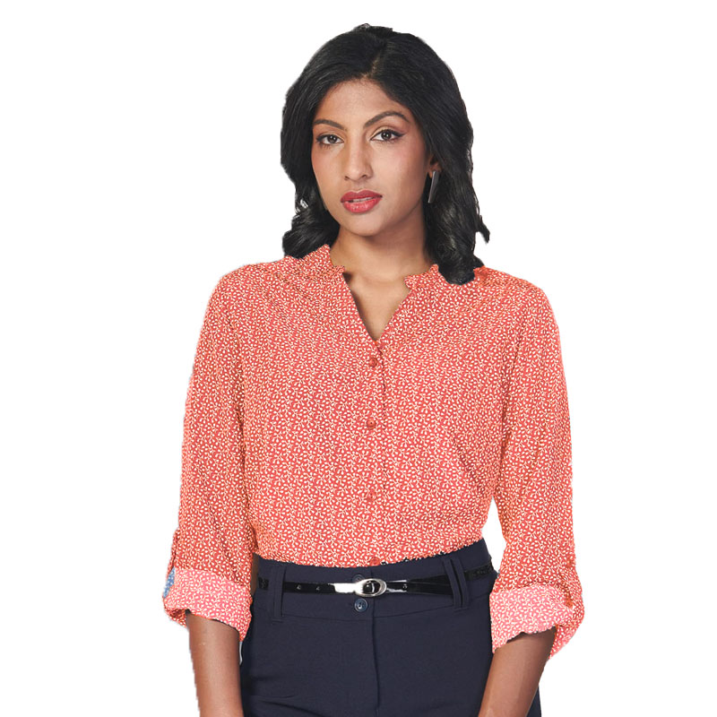 K221 Ladies Minimal Tulip Print Koshibo L/S Milla Blouse