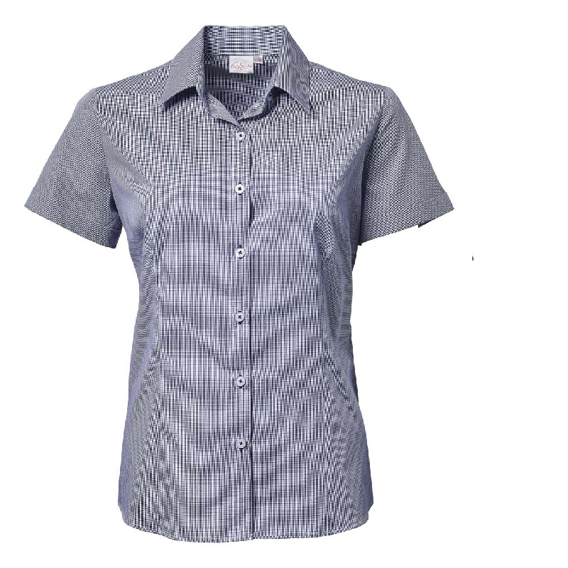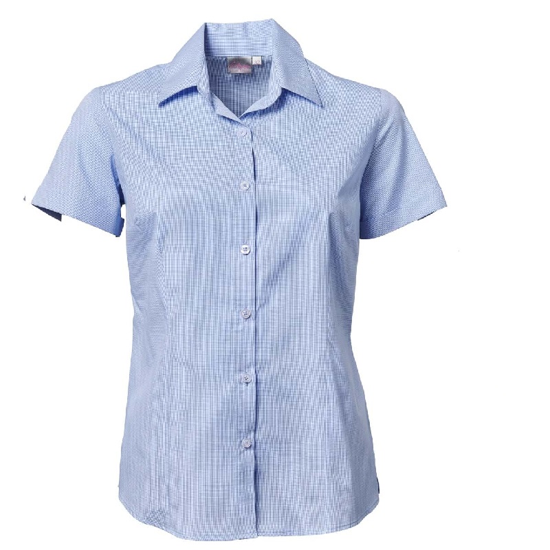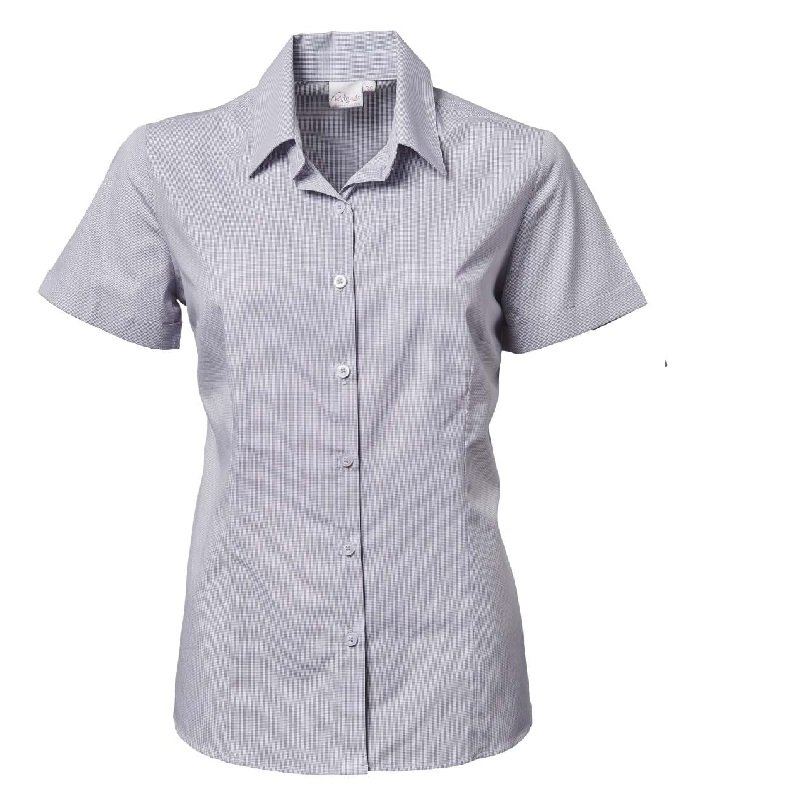 Amber S/S Blouse - Semi-fitted, with front and back darts, and side vents. Turn-back sleeve hems.