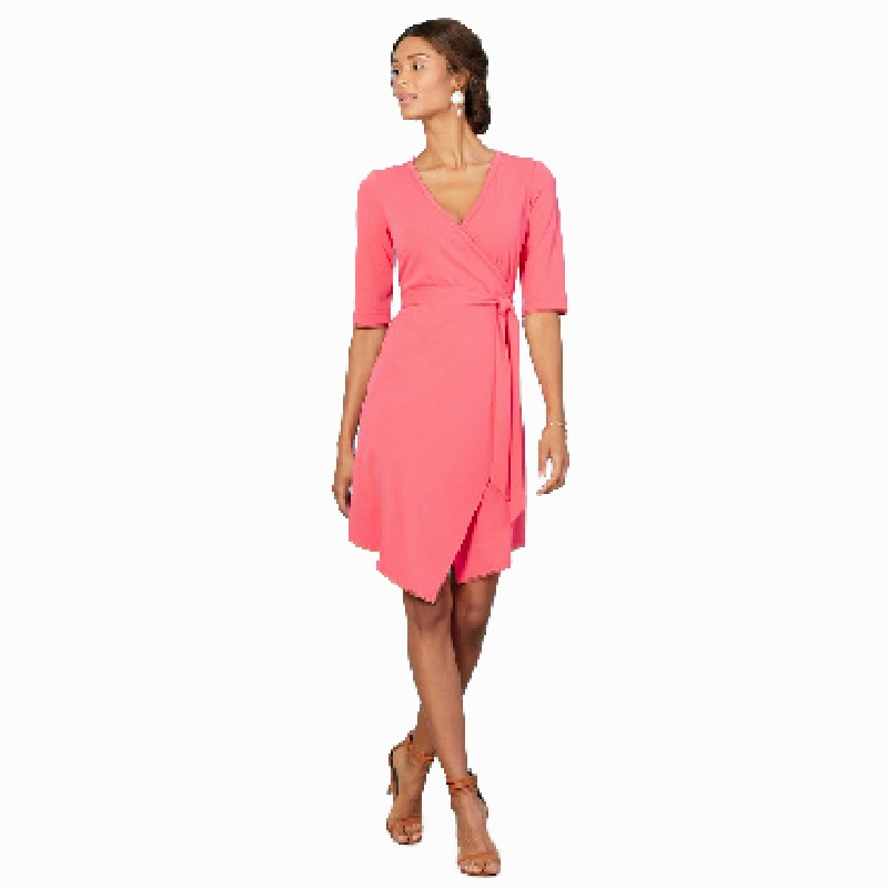 The Nosipho dress is a simple but stylish wrapover stretch dress with a shaped hem line.