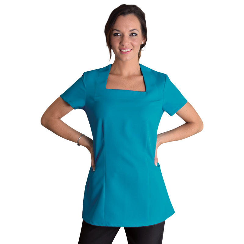 The Lily Beauty top is constructed from mini matt fabric and has an elegant square neck, is free from zips or buttons, has side slits for comfort and ease of movement and has wash & wear properties.