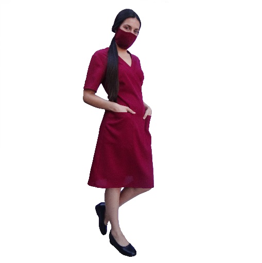 The Mbali wrapover scrub dress is a comfortable, adjustable nurses scrub dress made from 100% polyester.