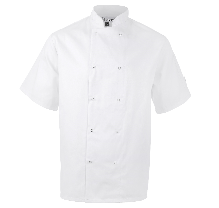 Double breasted with press studs. Thermometer sleeve pocket. Locally manufactured.