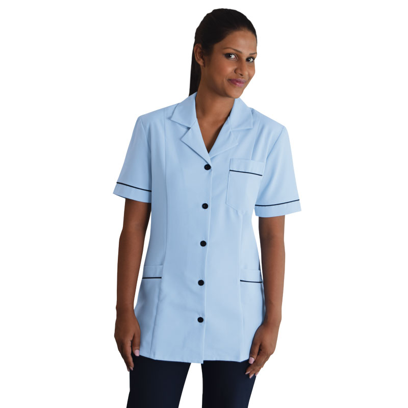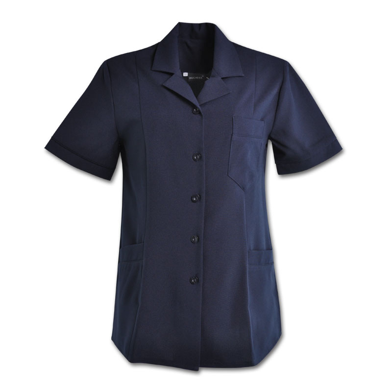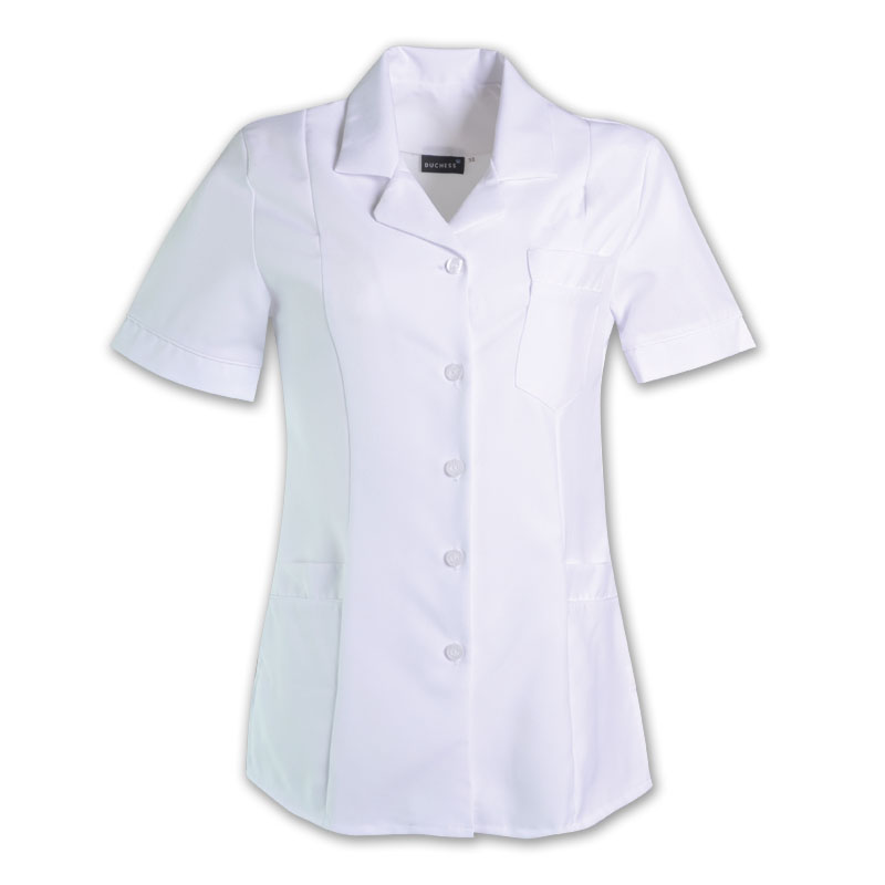 ArrayThe BARBARA top is panelled to create a flattering shape. This garment is ideal for use as a uniform with its fitted shoulder pads and versatile design.