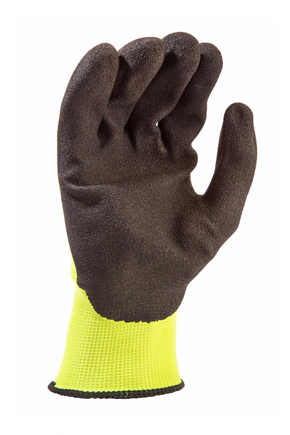 MOZZI 300HI 13gg polyester/spendex thread coated on the palm with a waterbased PU Micro foam Finish. MOZZI combine a high-visibility lime liner with water-based polyurethane coating. Thanks to the water-based polyurethane, users benefit from enhanced comfort with the renowned dexterity and fit of the MOZZI range. Palm dipping reinforces the protection without compromising flexibility and dexterity. Using water instead of dimethylformamide solvent enhances the comfort of the glove, as the polyurethane doesn’t penetrate inside it.