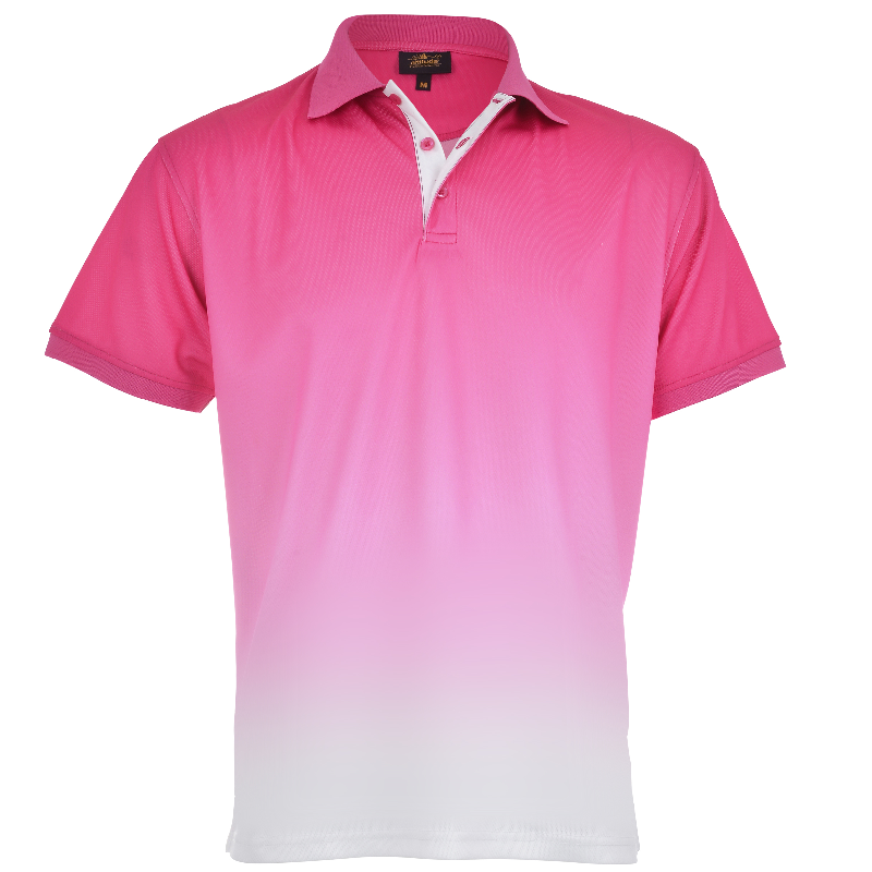 It’s time for you to make a bold choice and be seen in this stylish and sporty eye-catching sublimation print golfer designed to give you that sleek look while ensuring you stay comfortable all day long. Features include a cool comfort textured fabric, shaded sublimation print with matching knitted collar and cuffs, tonal buttons with contrast placket.