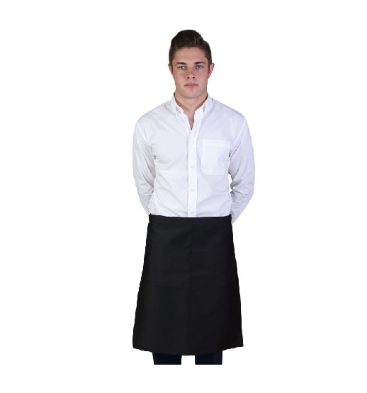 This practical and durable half apron with double front pockets is ideal for restaurant and hospitality industries.