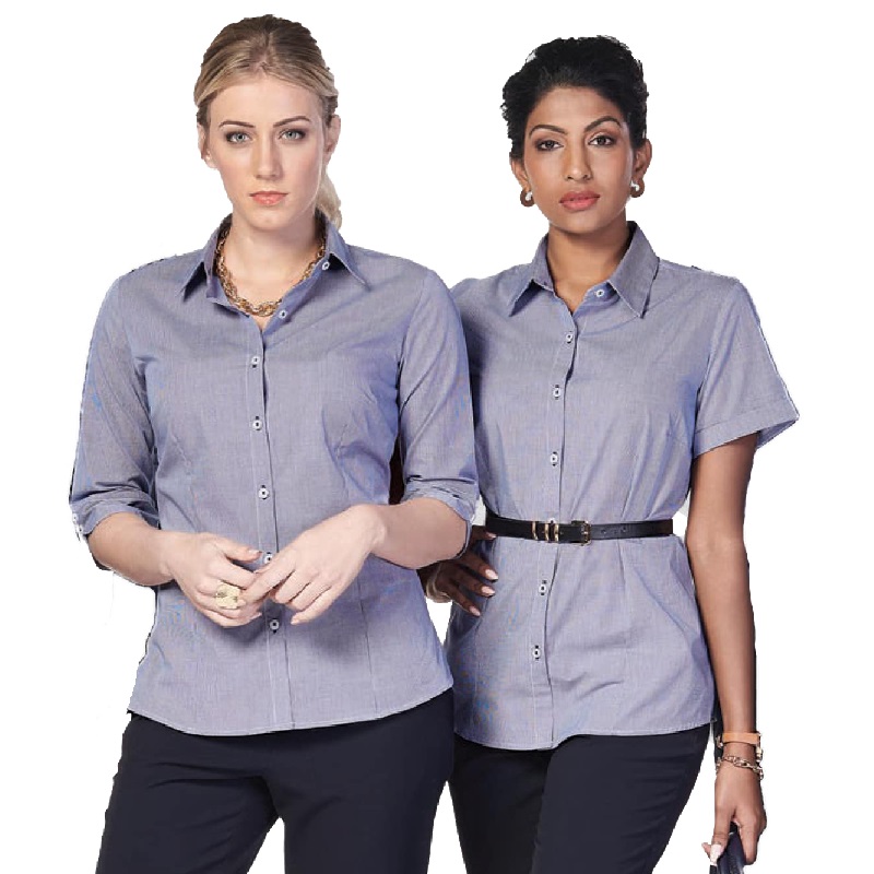 Amber S/S Blouse - Semi-fitted, with front and back darts, and side vents. Turn-back sleeve hems.