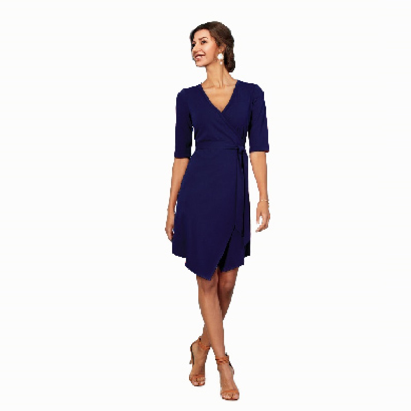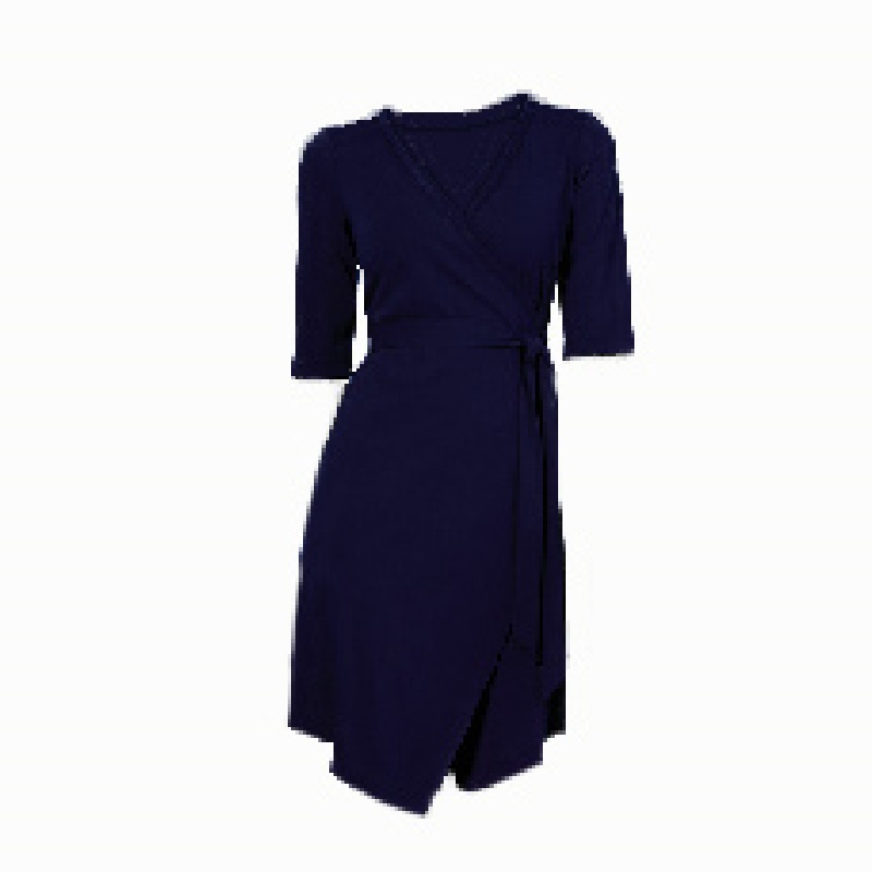 The Nosipho dress is a simple but stylish wrapover stretch dress with a shaped hem line.